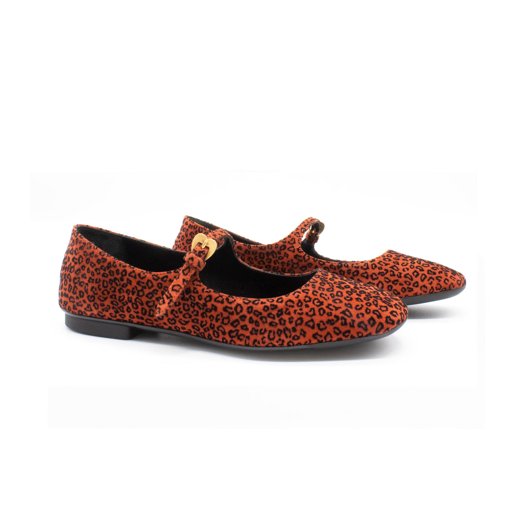 Fine LOVE Ballerina in brick suede with mini leo print - Online Exclusive